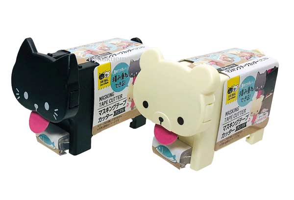 ペロッと舌を出したような、可愛いマスキングテープカッターです。クマ(ですよね?)とネコの2種類が販売されていました。